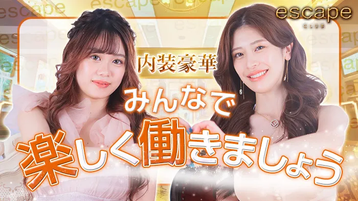 エスケープは内装がとてもすごいので、キラキラしたところで働きたいなと思って選びました!最近買った高価なものは洗濯機ぐらいしかないんですけど、それも全然迷わずに買えたので、頑張り次第ではいくらでも稼げると思います◎ほんとにみんな仲が良くて喧嘩もなかなか起きないお店なので、一緒に働きたいです!ご応募お待ちしてま~す♪