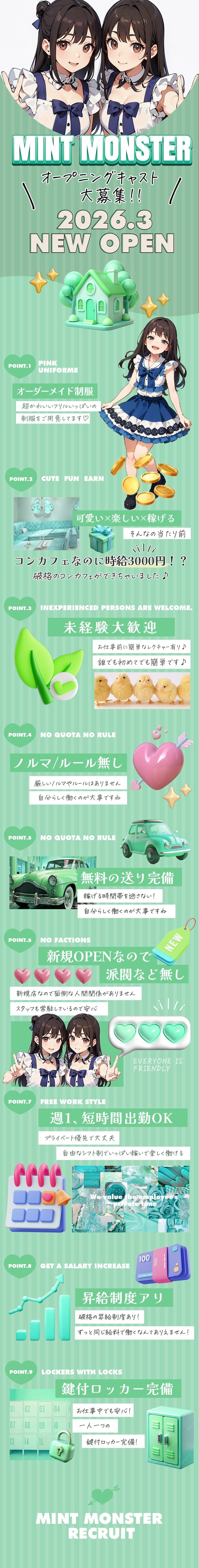 ナイトワークデビューにもうってつけで働きやすい【ミンティモンスター】への入店、お待ちしております◎