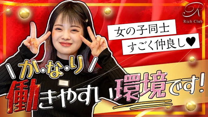 【石橋】RICH CLUB(リッチクラブ)は女の子同士の仲が良く、かなり働きやすいお店です◎とっても環境が良いので私ももう1年近くこのお店で働いています♡ギスギスすることは無いし、お客様も優しいですよ!ぜひ一緒に楽しく働きましょう♪