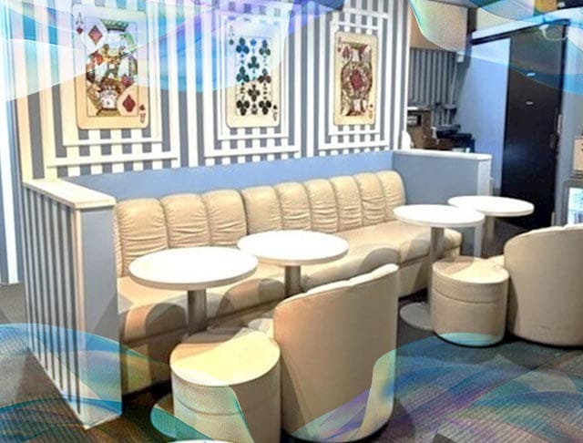 お茶やジュースを片手に、お客様との会話を楽しめます!